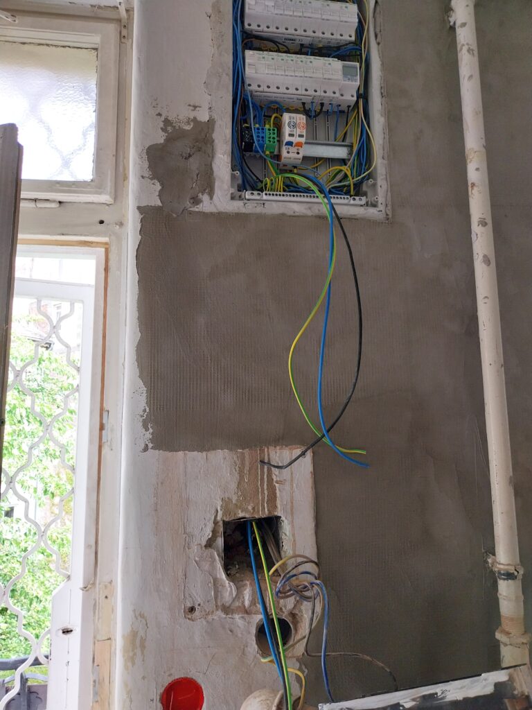 - A szabálytalan PE–N összekötés megszüntetése, amely már a régi elosztó cseréjekor megtörtént,