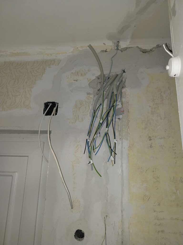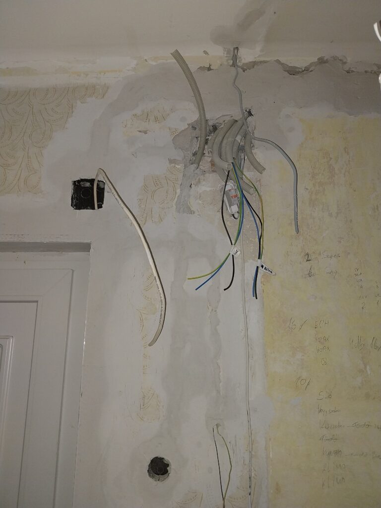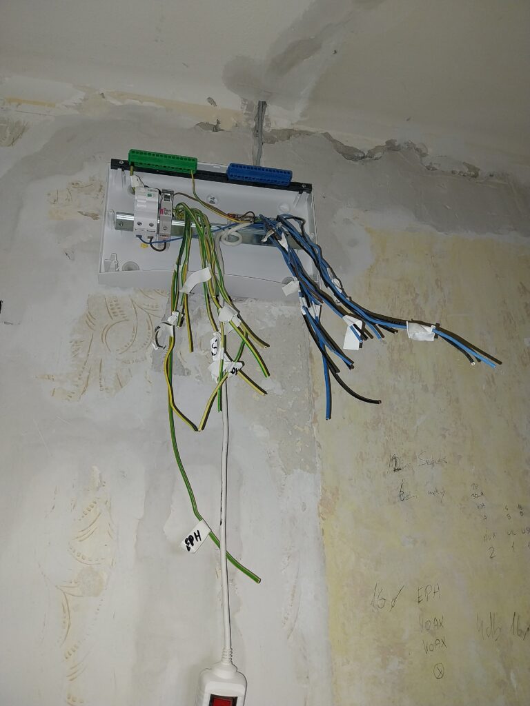 🪛 A régi, elavult alumínium vezetékeket teljes mértékben eltávolítottuk, és helyettük korszerű, rézvezetékes rendszer került kiépítésre. A világítási áramkörök esetében az elavult alumínium vezetékeket MBcu típusú, falban is biztonságosan alkalmazható réz kábelekre cseréltem. Ennek eredményeként a lámpatestekhez is kialakításra került a védőföldelés, amely korábban teljesen hiányzott – ez különösen fontos az érintésvédelmi előírások teljesítése szempontjából.