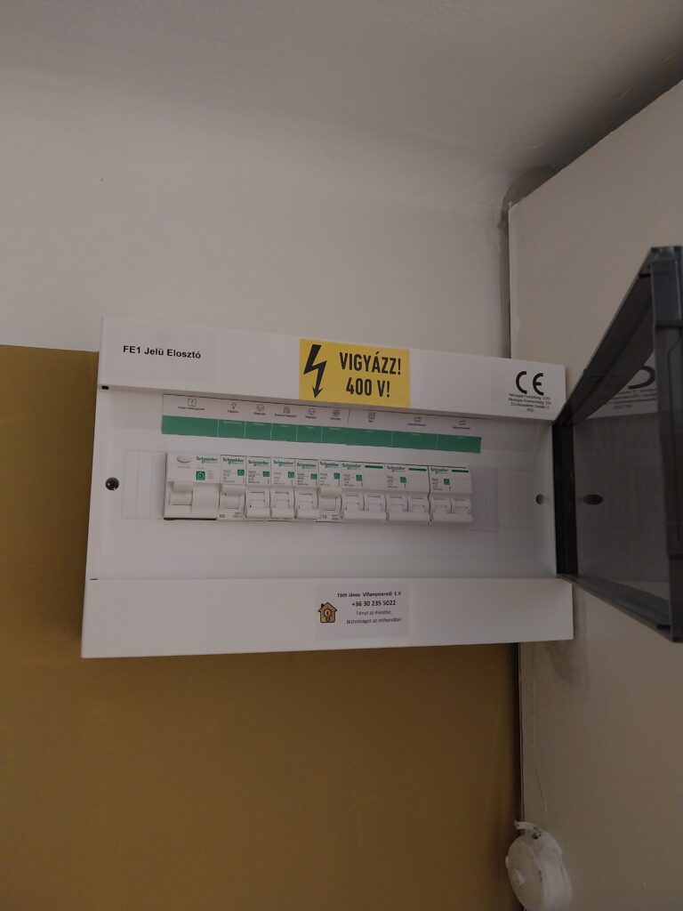 🔧 A régi elosztó helyére egy 12 modulos, korszerű elosztószekrény került felszerelésre, amelybe beépítésre került: