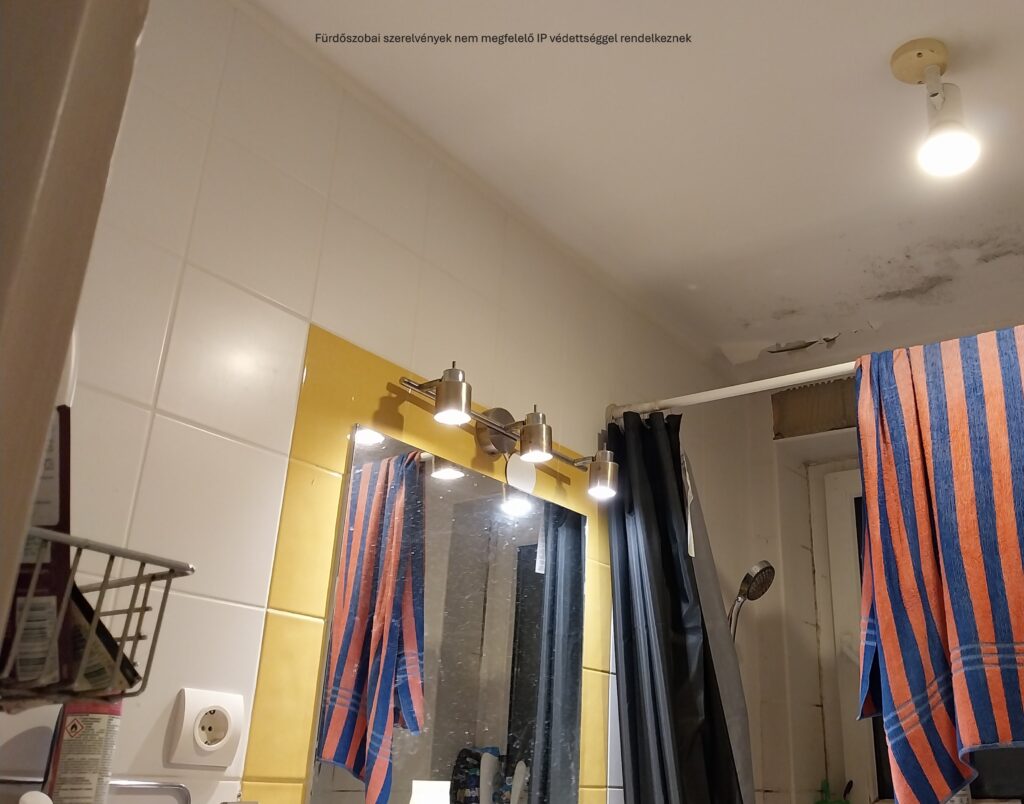 🌊 A fürdőszobában található szerelvények nem voltak IP-védettek, így a fröccsenő víz áramütéses veszélyt jelentett.